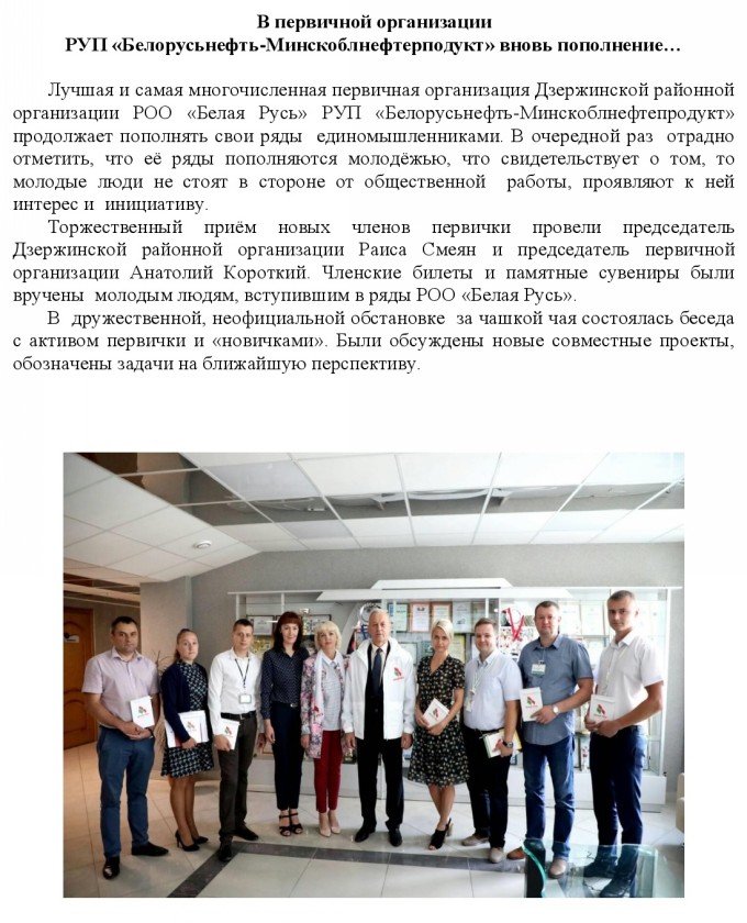 первичек, так и Дзержинской районной организацией РОО «Белая Русь».