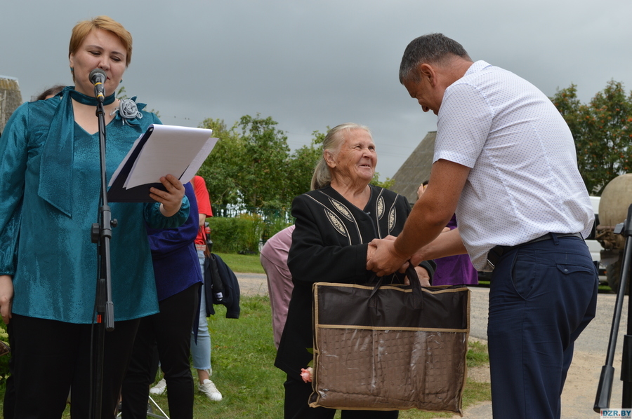 Он же, как председатель первичной организации, вручил подарки от районной организации Белая Русь юбилярам, матери-героине и самому маленькому жителю деревни. А кто из них по разным причинам не смог присутствовать на празднике, Святослав Дарашевич вручил подарки, приехав к ним домой.