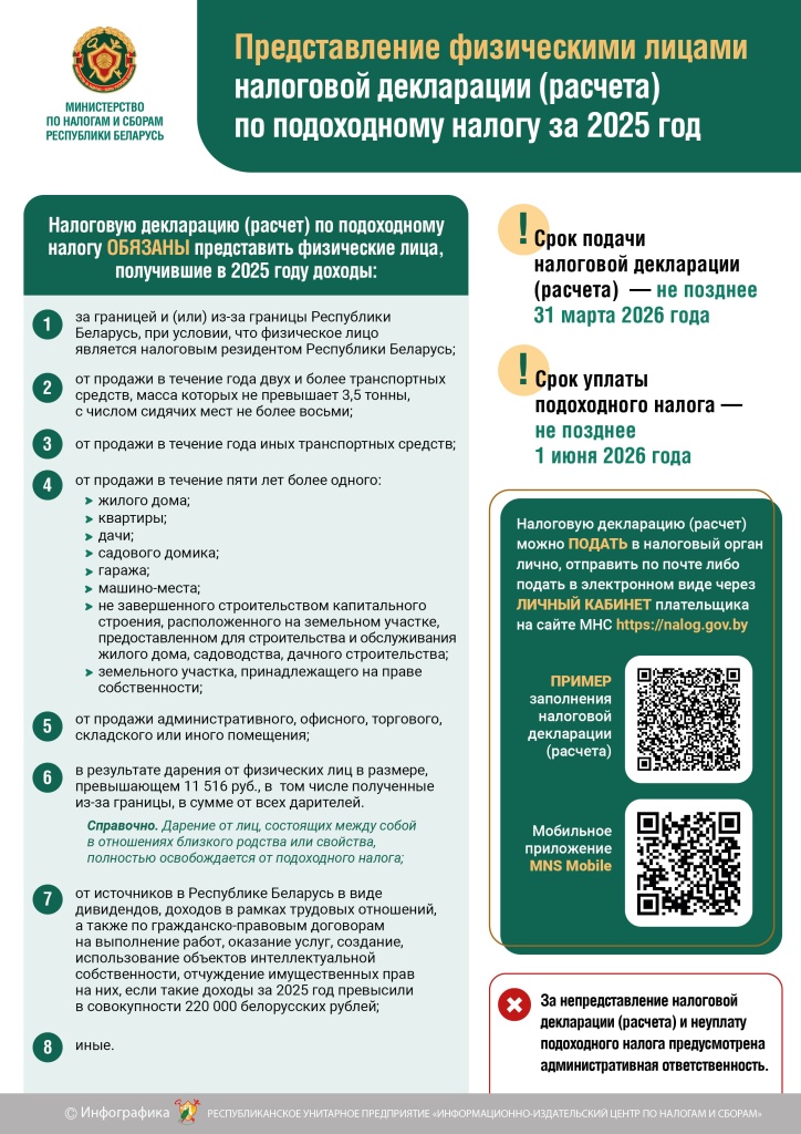 Вниманию физических лиц и индивидуальных предпринимателей!ИМНС РБ по Дзержинскому району напоминает!