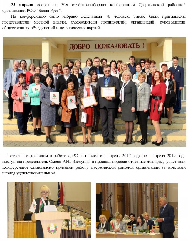 В апреле состоится V отчётно-выборная Конференция Дзержинской районной организации РОО «Белая Русь». В первичных организациях проходят отчётно-выборные собрания.