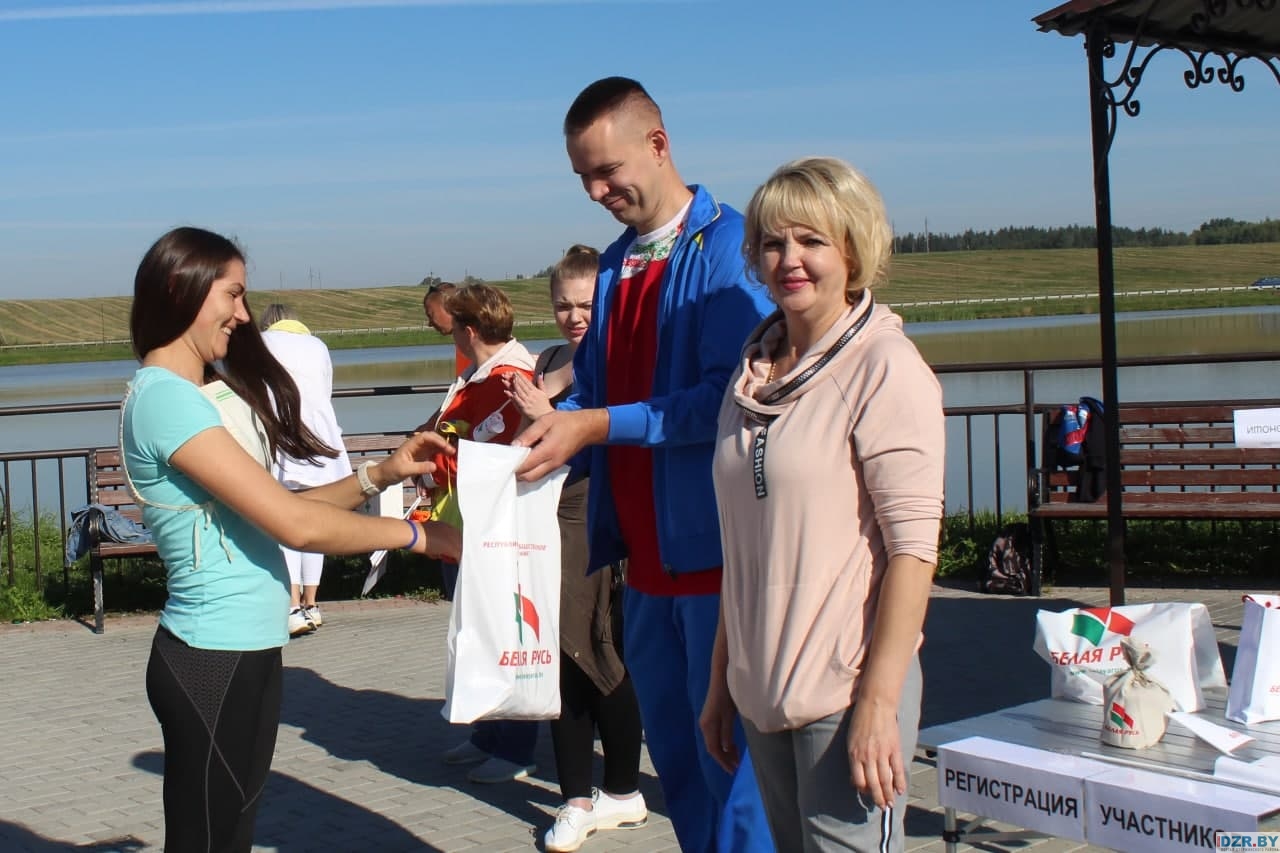 На финише всех участников ожидали памятные подарки от районной организации «Белая Русь», которые вручала председатель Раиса Смеян.