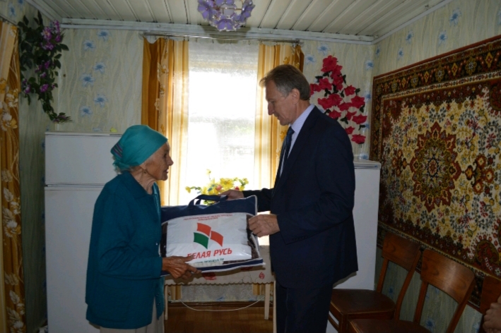 Он же, как председатель первичной организации, вручил подарки от районной организации Белая Русь юбилярам, матери-героине и самому маленькому жителю деревни. А кто из них по разным причинам не смог присутствовать на празднике, Святослав Дарашевич вручил подарки, приехав к ним домой.